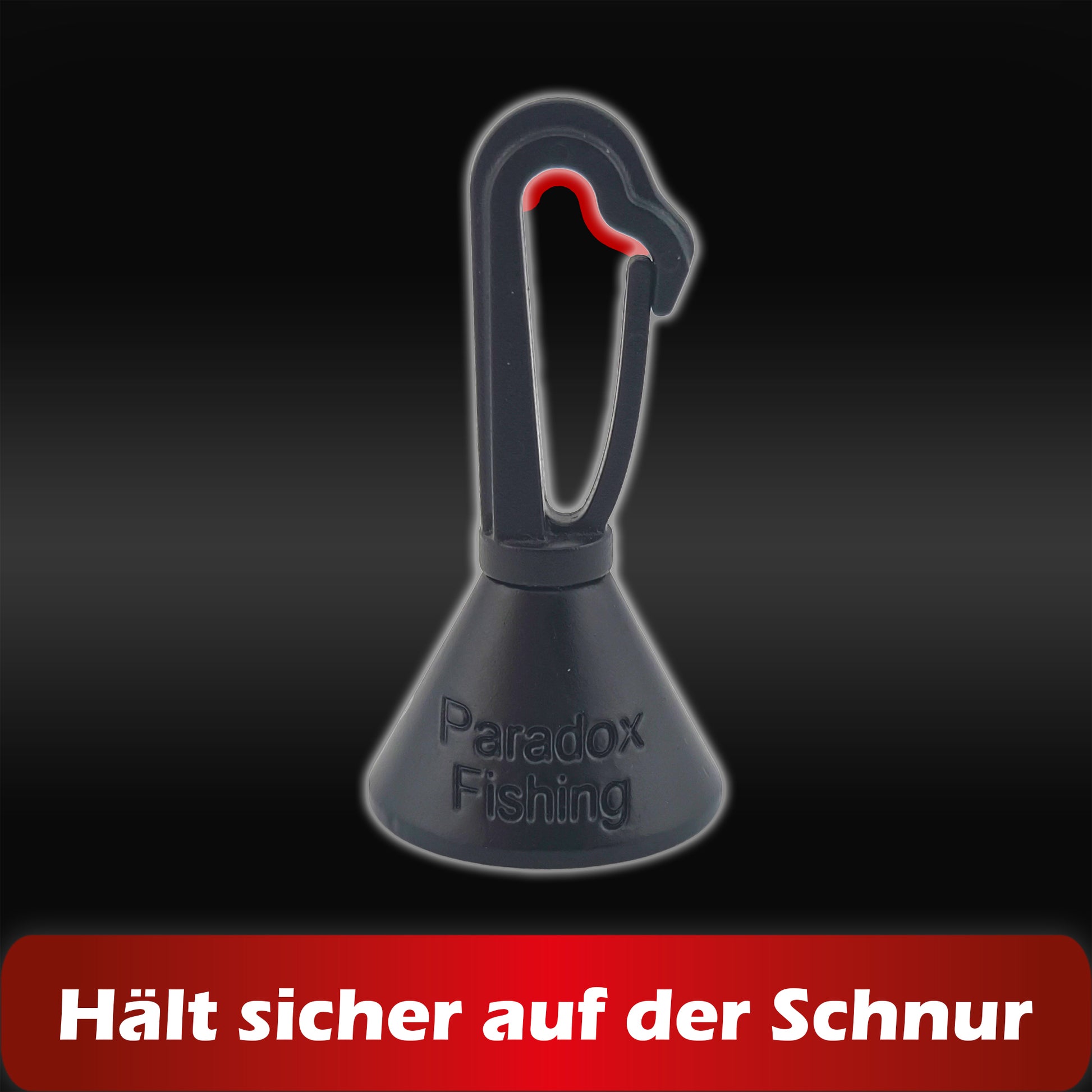 Hochwertiger, sicherer GLIDE-CLIP: Die Anwendung ist denkbar einfach! Dank des stabilen GLIDE-CLIPs kannst Du das Absenkblei schnell und sicher auf der Hauptschnur einklippen – den Rest erledigt das Gewicht von selbst.
