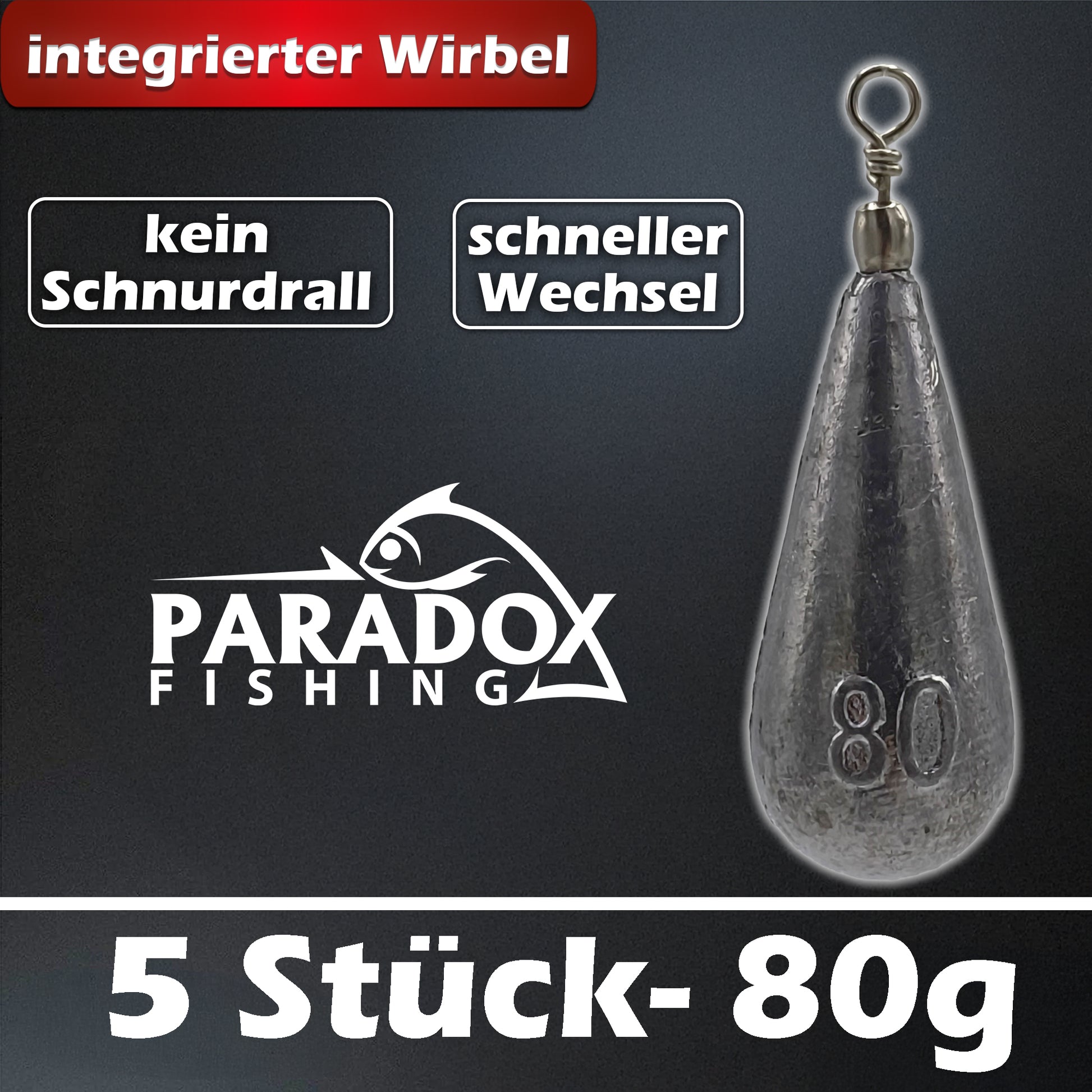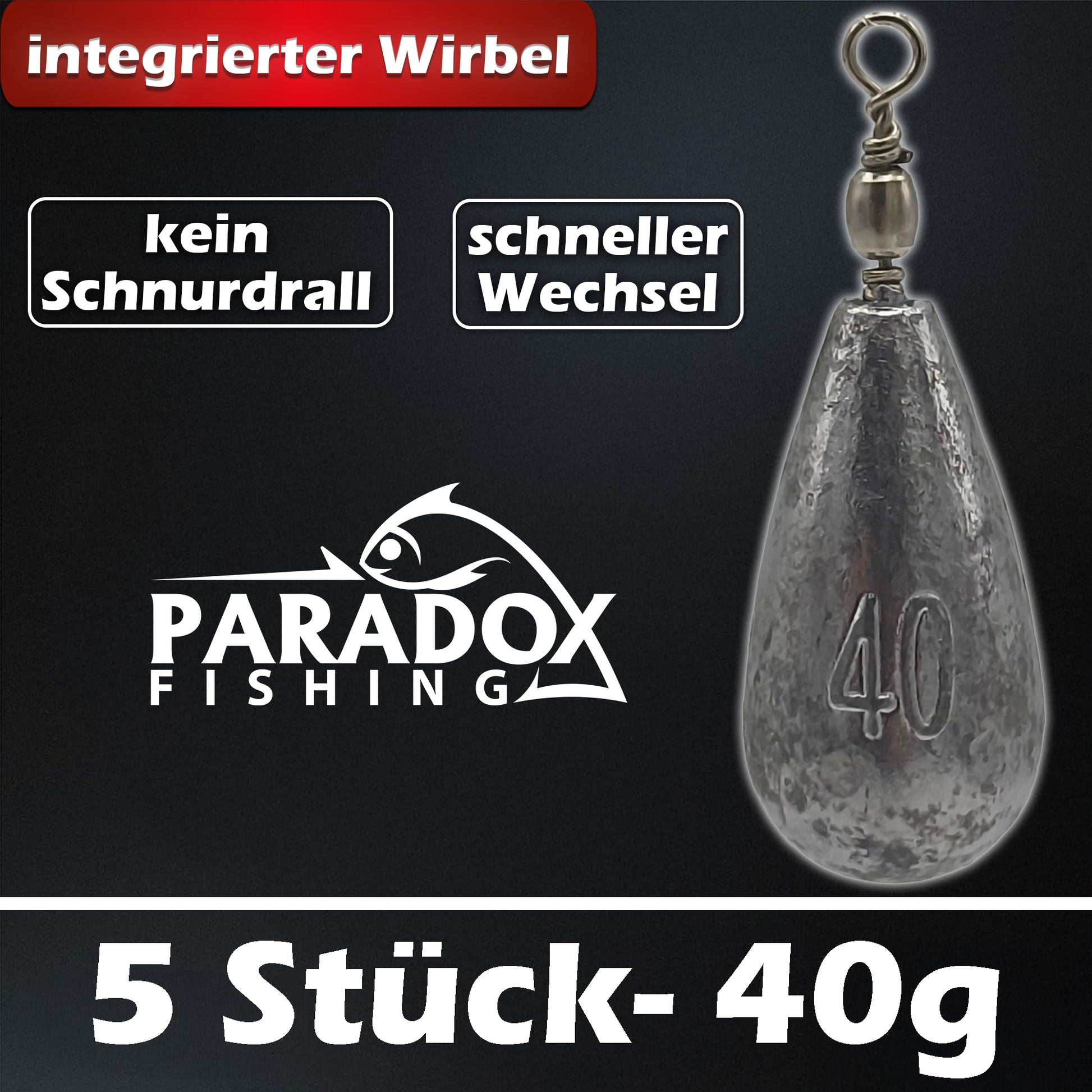 Birnenform mit integriertem Wirbel: Die klassische Birnenform sorgt für gute Wurfweiten und Stabilität am Grund. Der montierte Qualitäts-Wirbel ermöglicht einen schnellen, drallsicheren Anschluss an Dein Vorfach oder Deinen Clip.