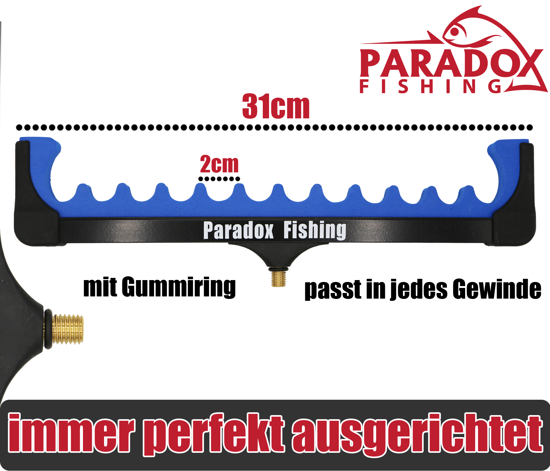 Immer perfekt ausgerichtet: Das Gewinde der Ablage ist mit einem praktischen Gummiring ausgestattet. Dies ermöglicht es Dir, die Rutenablage immer ideal und stabil auszurichten, ohne dass sie sich selbstständig lockert oder verrutscht.